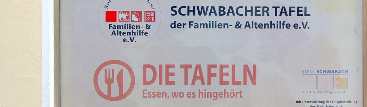 Seit 1995 betreibt die Familien- und Altenhilfe e.V. die Schwabacher Tafel. Wir sammeln qualitativ einwandfreie Lebensmittel, die sonst im Müll landen würden und verteilen sie gegen einen kleinen Obolus an sozial benachteiligte Schwabacher Bürgerinnen und Bürger. Die Lebensmittel werden an drei Tagen die Woche von unseren hauptamtlichen Fahrern von den Einzelhändlern abgeholt. Ehrenamtliche Mitarbeiterinnen und Mitarbeiter kümmern sich um die Sortierung und die Ausgabe der Waren. Die Schwabacher Tafel beschäftigt drei Mitarbeiter und über 20 ehrenamtlich Tätige.